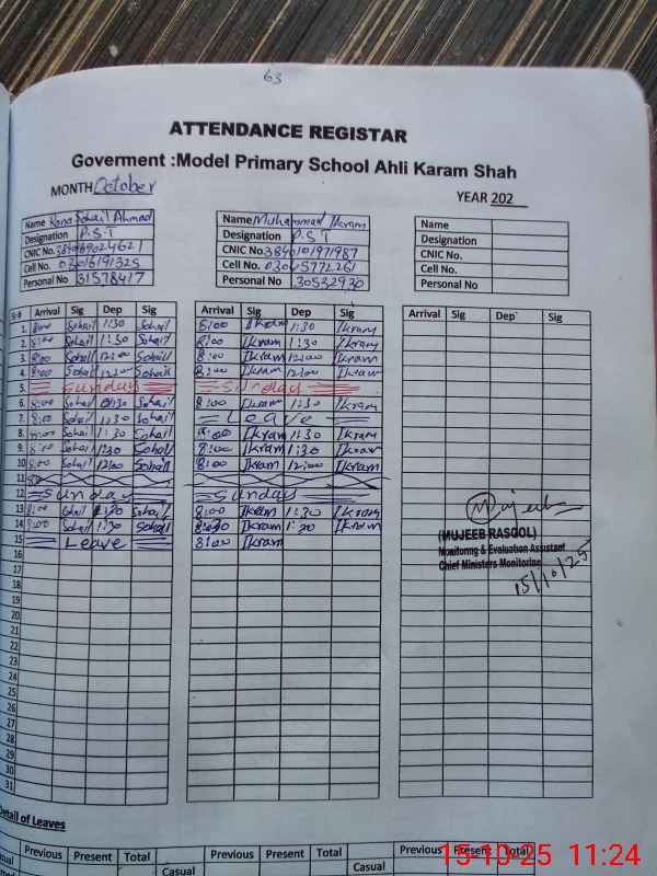 | EMIS Code: 38410340 | Name of School: GMPS AHLI KARAM SHAH | |||