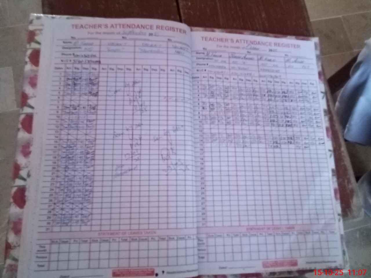 | CNIC | Full Name | Designation | R/C | Absence During Last Calender Month |