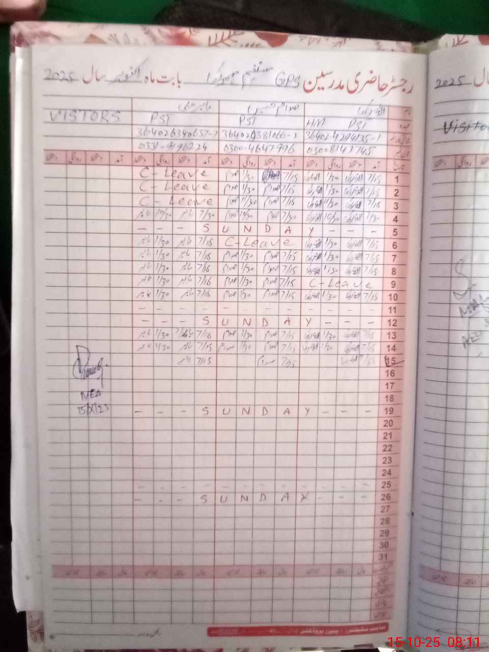 | CNIC | Full Name | Designation | R/C | Absence During Last Calender Month |