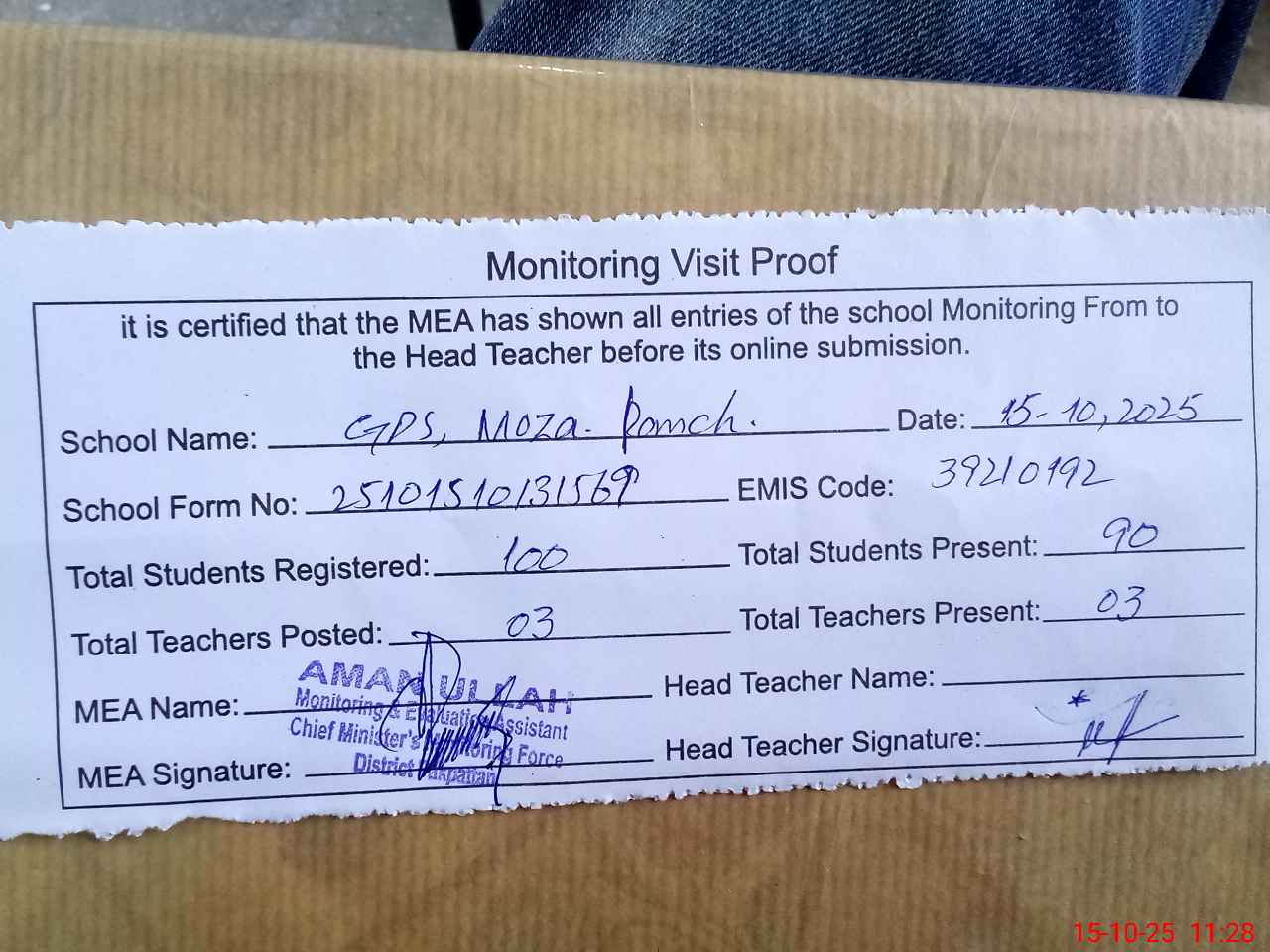 | EMIS Code: 39210192 | Name of School: GPS MOUZA PAINCH PO PAKPATTAN | |||