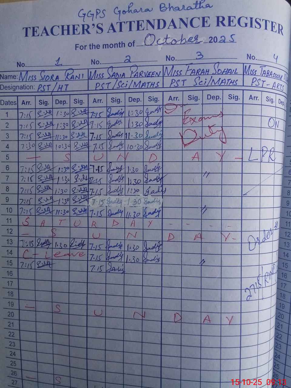 | 34**** | Fa**** So**** | 1 | 1 | 0 | 0 | 0 | 0 | 0 | 0 | 0 | 0 | 0 | Exam Duty |
