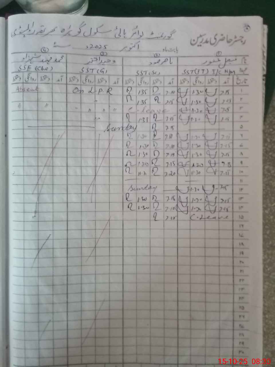 | 37**** | Fa**** Gh**** | SST | Regular | 0 | 0 | 0 | 0 | 0 | 0 | 0 | 0 | 0 | Absent (Un-Authorized) |