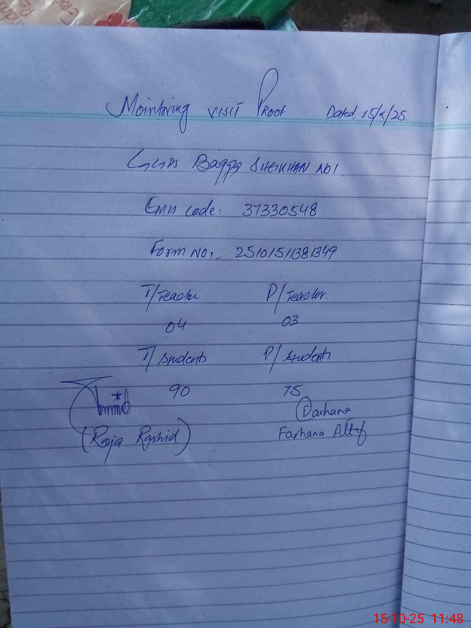 | EMIS Code: 37330548 | Name of School: GGPS BAGGA SHIKHAN NO 1 | |||