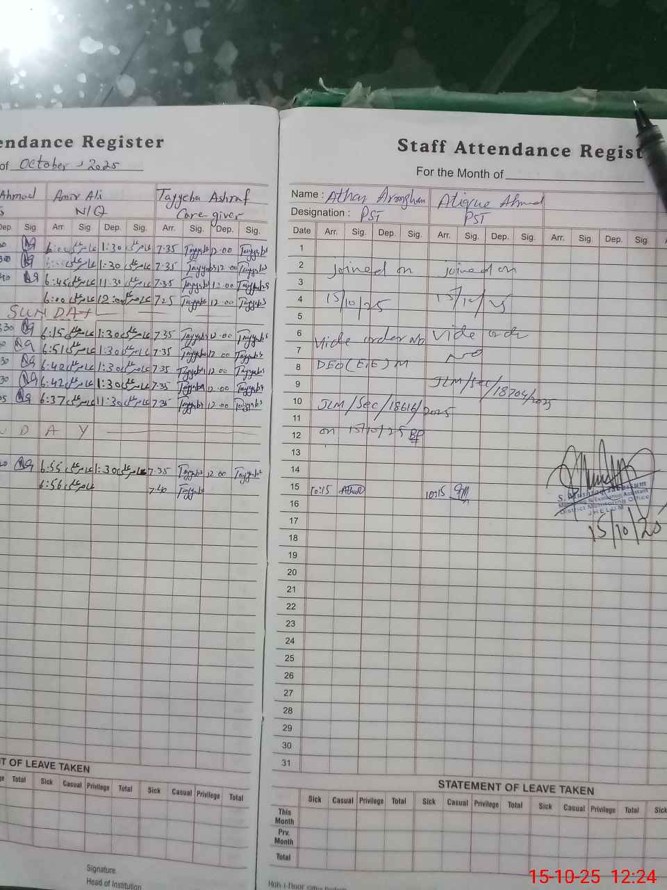 | 37**** | Ri**** Hu**** | 1 | 0 | 0 | 30 | 0 | 0 | 0 | 0 | 0 | 0 | Absent (Un-Authorized) | |