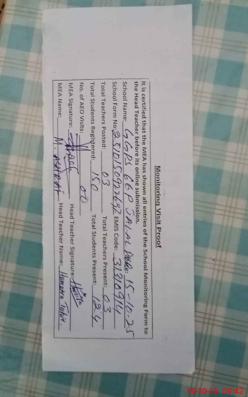 | EMIS Code: 31310914 | Name of School: GGPS 66/P JALAL PUR | |||