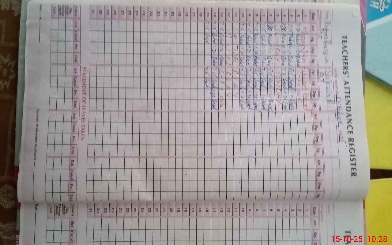 | Remarks (Use Separate Page if Required): ENROLLMENT TAKEN FROM ATTENDENCE REGISTERS OF STUDENTS ATTENDENCE OF STUDENTS CARRIED OUT BY HEAD COUNT | |||||