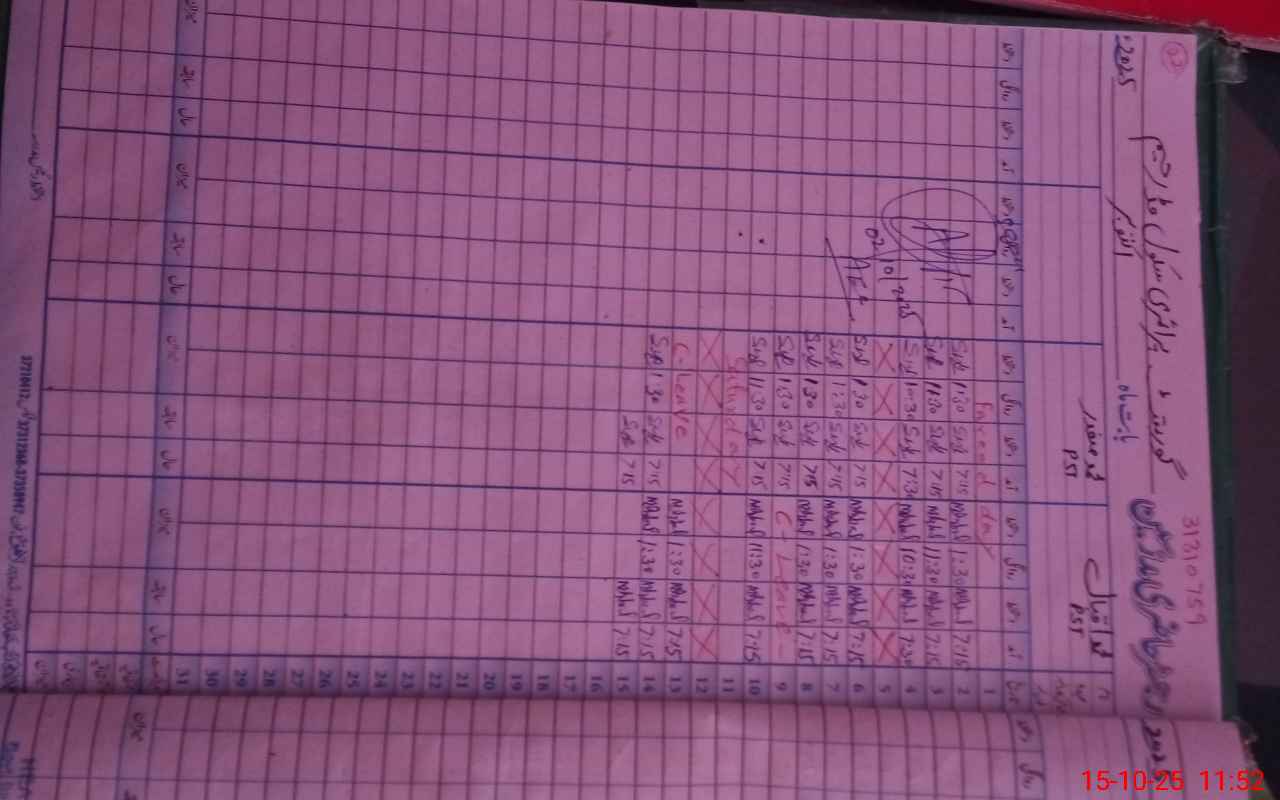 | CNIC | Full Name | Designation | R/C | Absence During Last Calender Month |