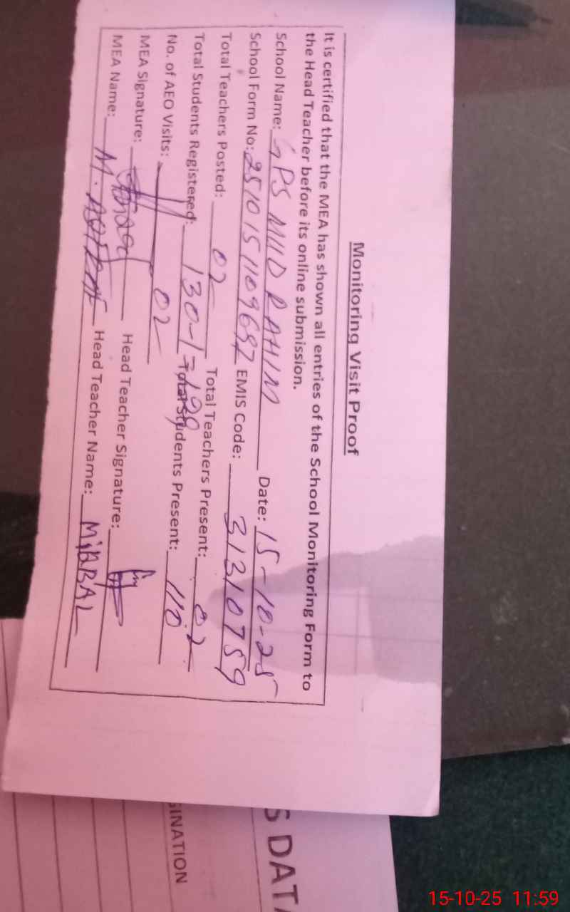 | EMIS Code: 31310759 | Name of School: GPS MUD RAHIM | |||