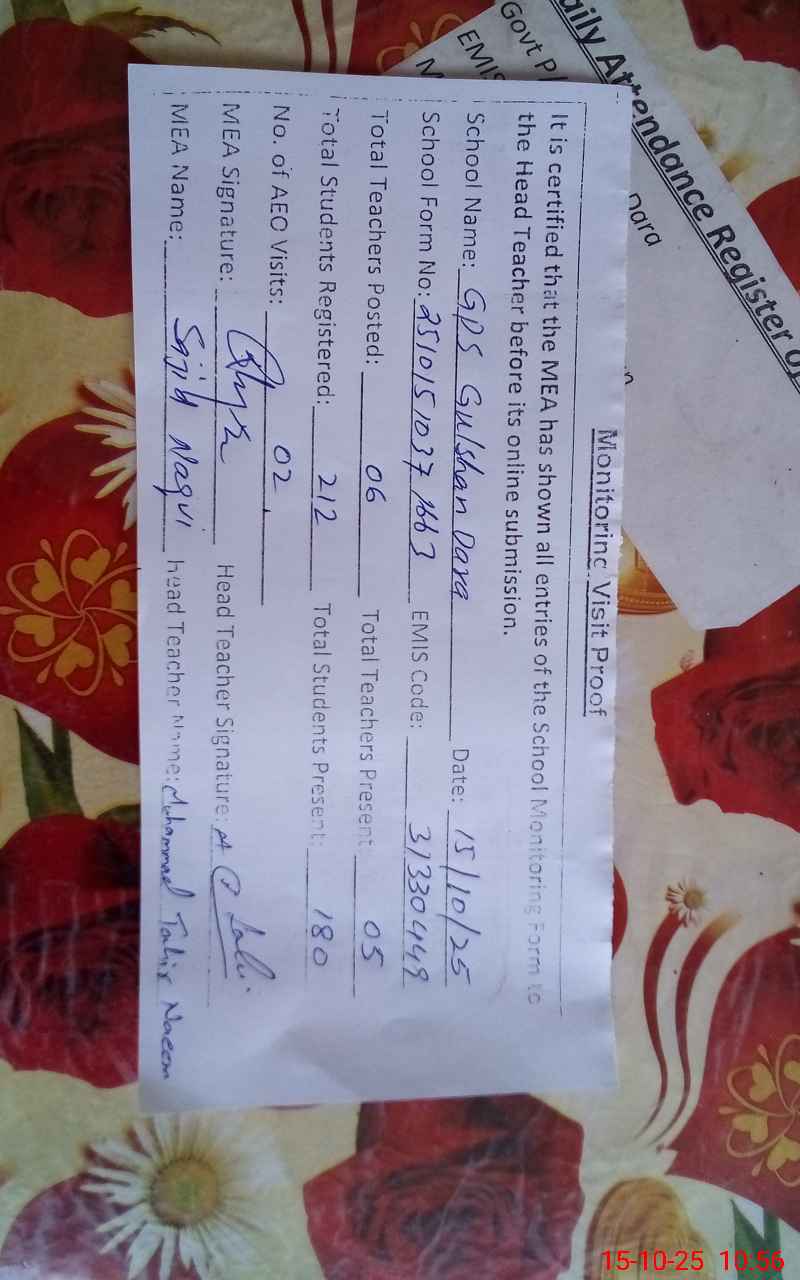 | EMIS Code: 31330449 | Name of School: GPS GULSHANDARA | |||