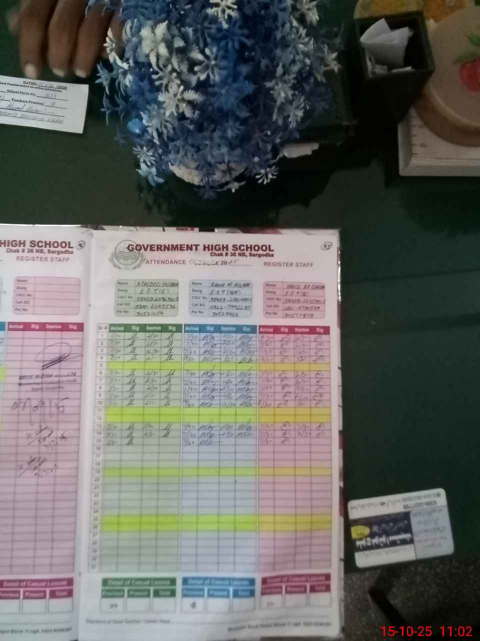| CNIC | Full Name | Designation | R/C | Absence during last cal. month |