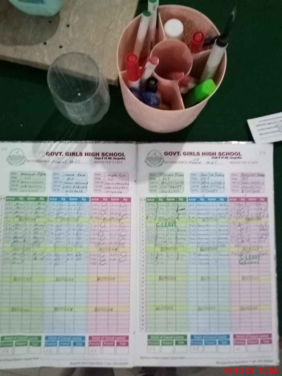 | CNIC | Full Name | Designation | R/C | Absence During Last Calender Month |