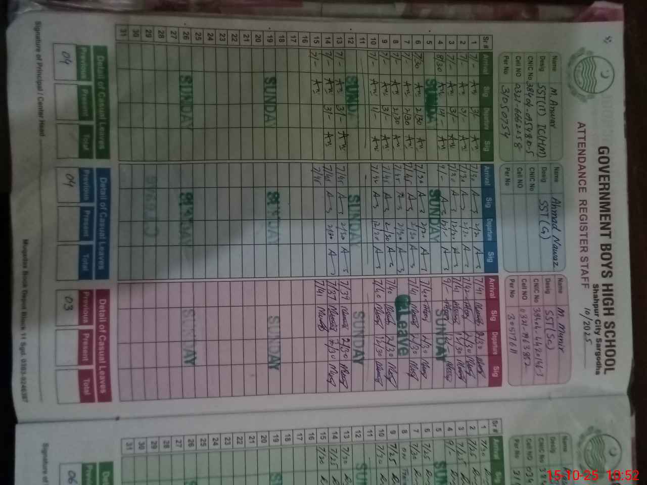 | 38**** | Af**** Ah**** | CHOWKIDAR | Regular | 0 | 0 | 0 | 0 | 0 | 0 | 0 | 0 | 0 | Other |
