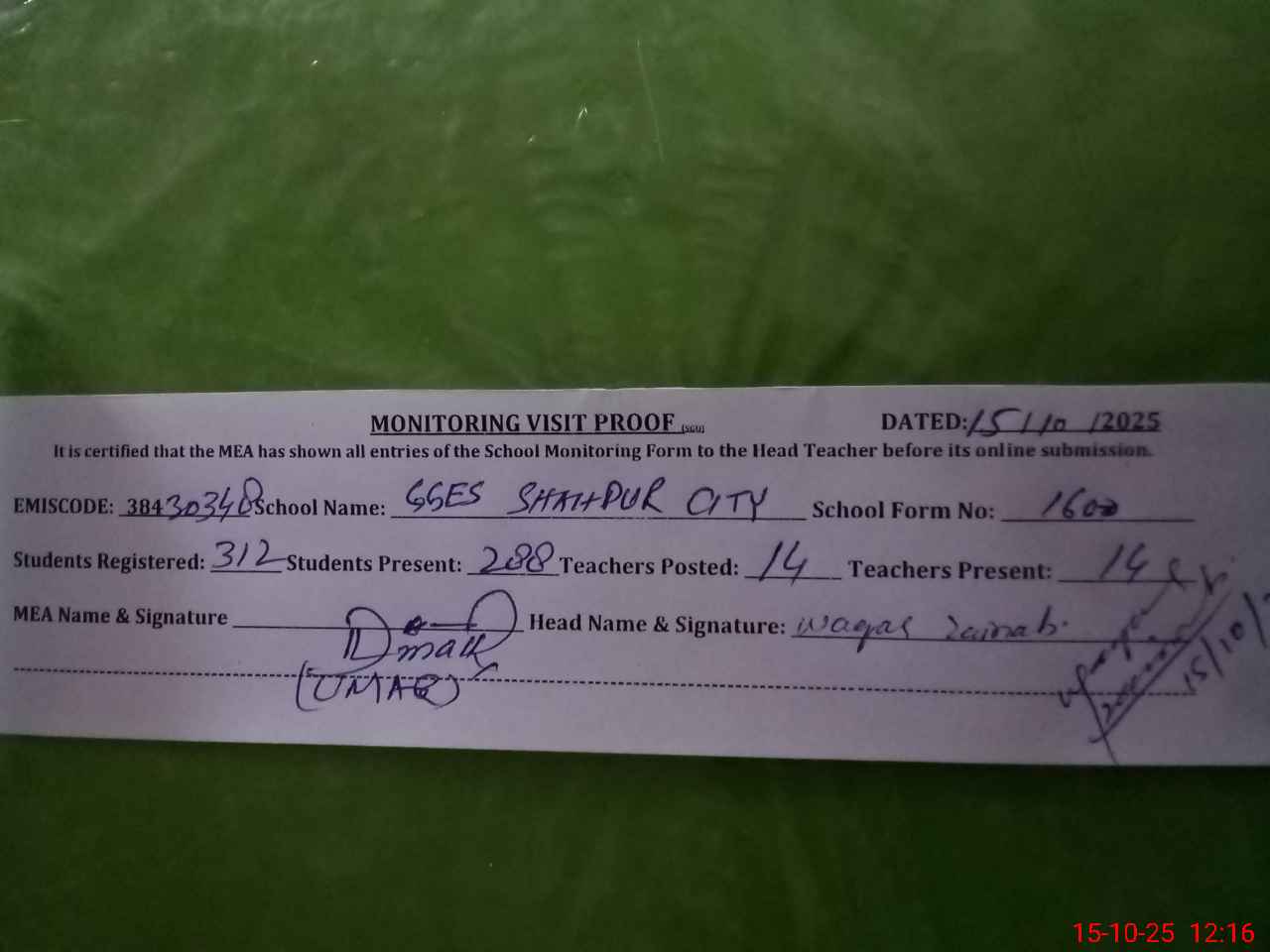 | Certified that this School was Inspected by the Undersigned MEA/DMO Today and the Information Stated Above is as Per Record. | |||||