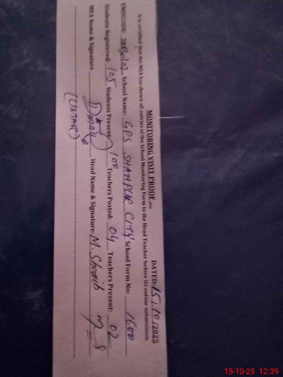 | EMIS Code: 38430102 | Name of School: GPS SHAHPUR CITY | |||