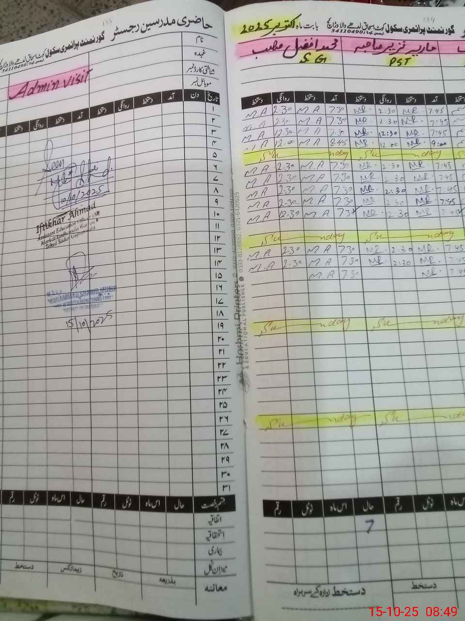| Name: MU**** AS**** Designation: (School Headmaster's/Headmistress's) PST Phone/Cell Number: 03**** |