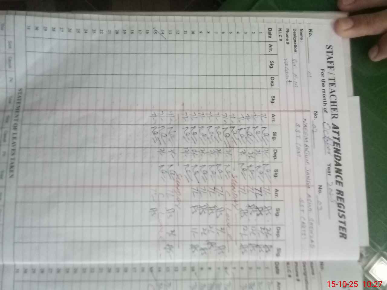 | CNIC | Full Name | Designation | R/C | Absence During Last Calender Month |