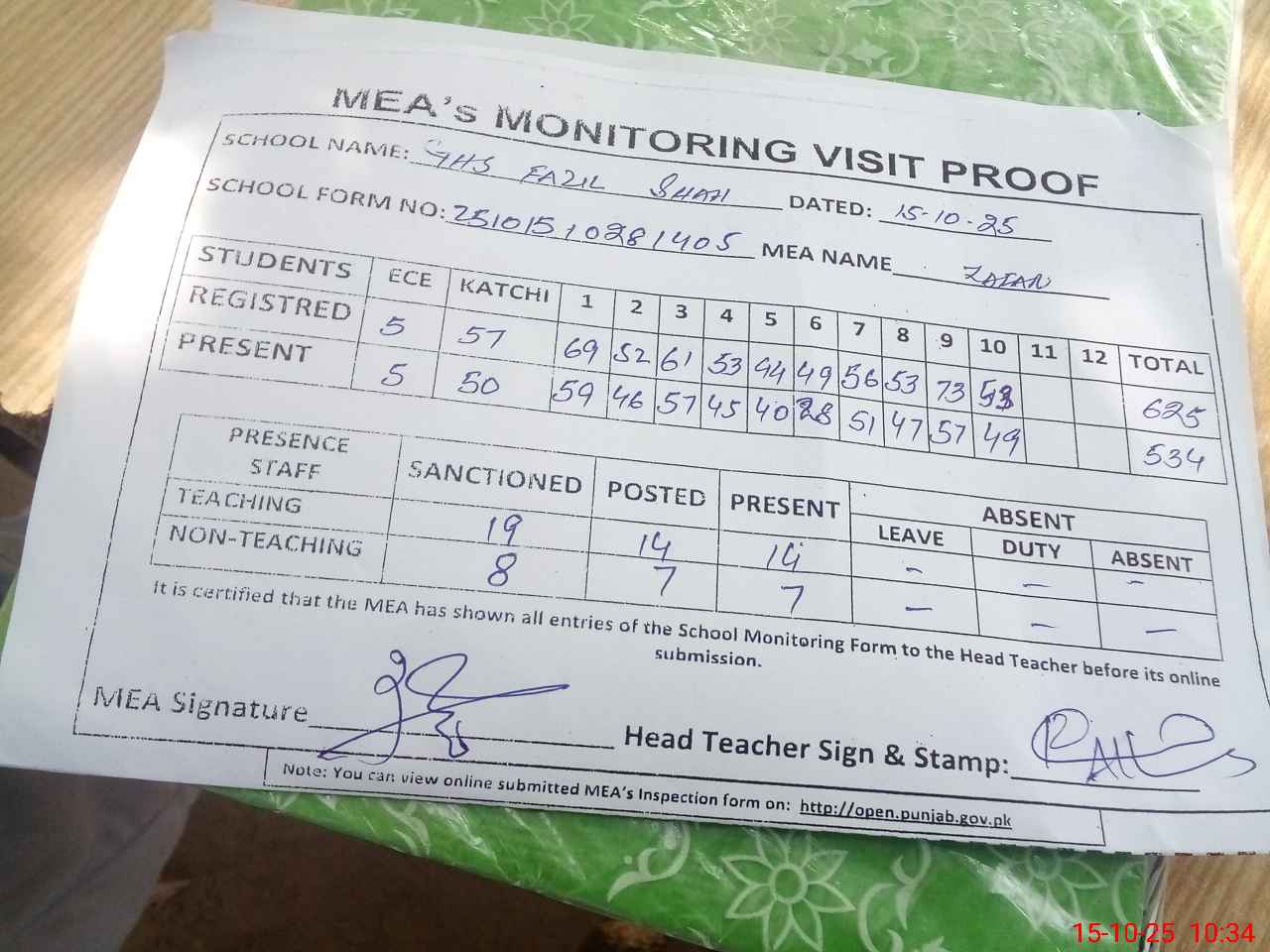 | EMIS Code: 36410056 | Name of School: GHS FAZIL SHAH, P/O SARDAR PUR, SARAI SIDHU | |||