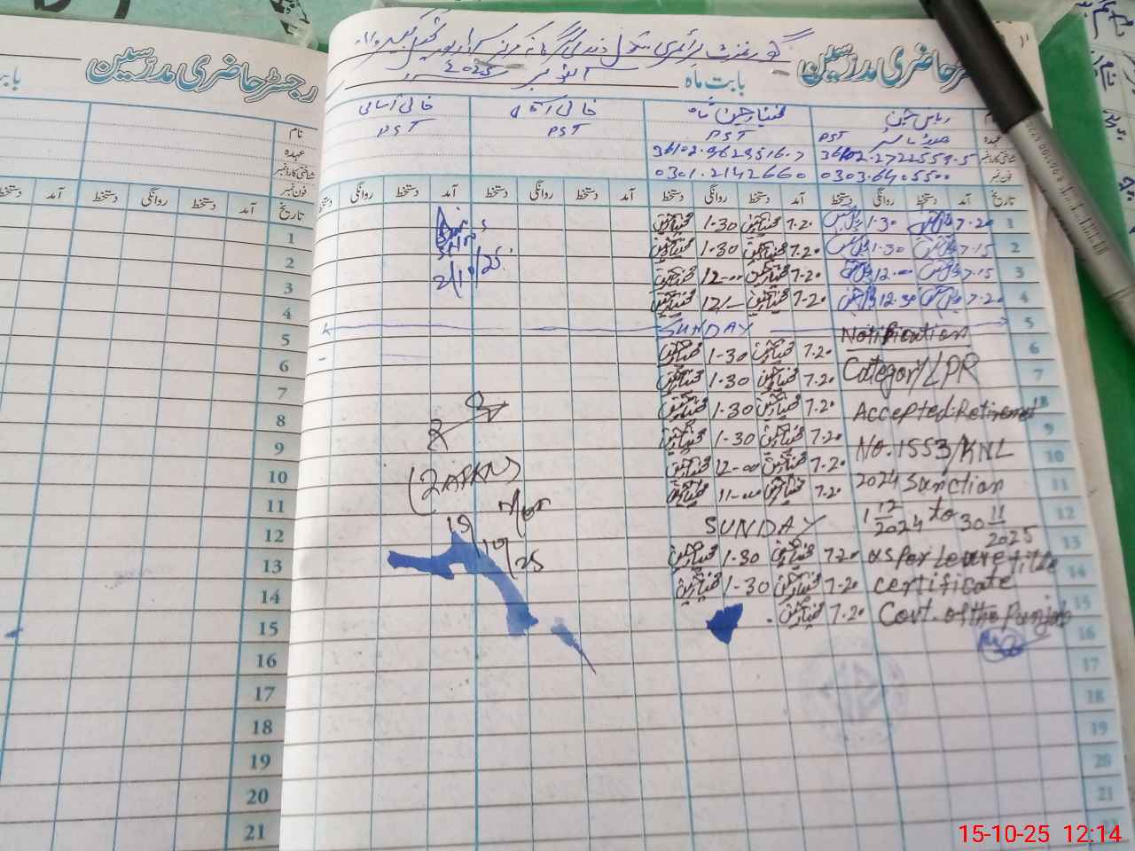 | Name: Mu**** Hu**** Sh**** Designation: (School Headmaster's/Headmistress's) PTC/JV Phone/Cell Number: 03**** |