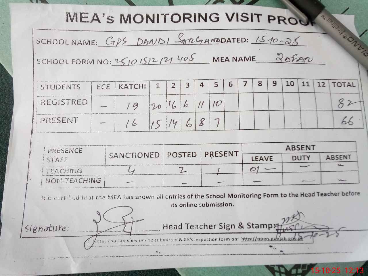 | EMIS Code: 36410248 | Name of School: GPS DANDI SARGANA, SARAI SIDHU | |||