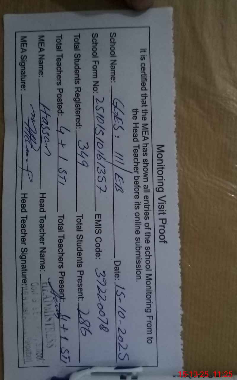 | EMIS Code: 39220078 | Name of School: GGES 111 EB P.O.ARIFWALA | |||