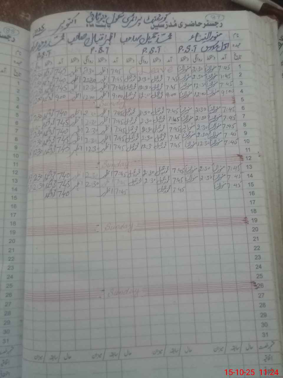 | CNIC | Full Name | Designation | R/C | Absence During Last Calender Month |