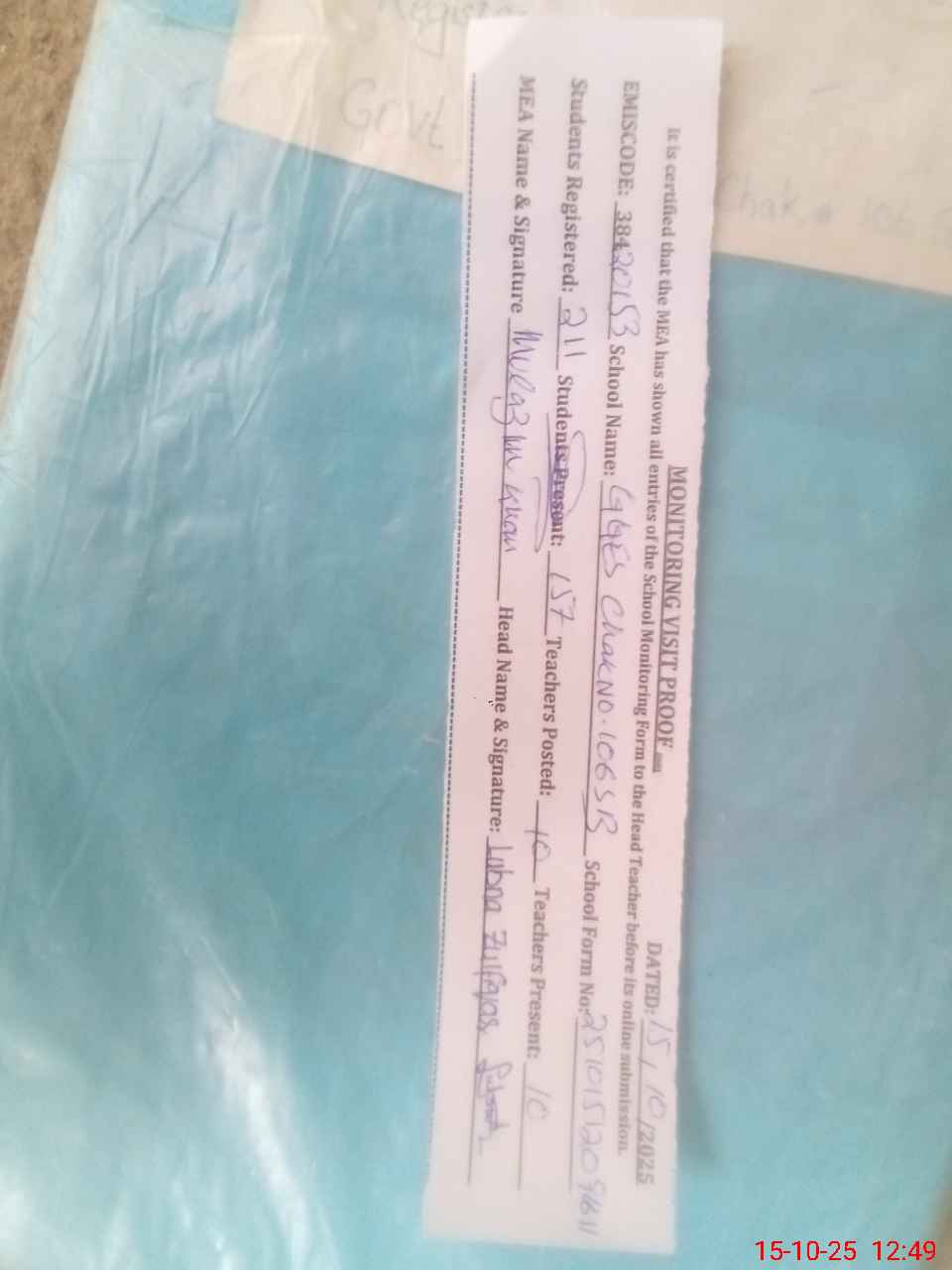| EMIS Code: 38420153 | Name of School: GGES CHAK NO.106 SB | |||