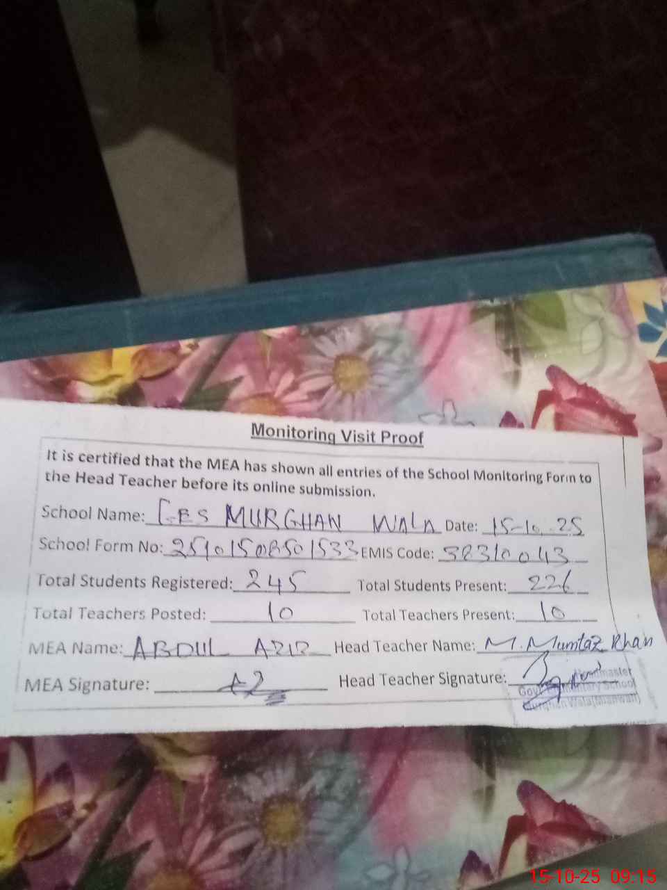 | EMIS Code: 38310043 | Name of School: GES MURGHAN WALA | |||