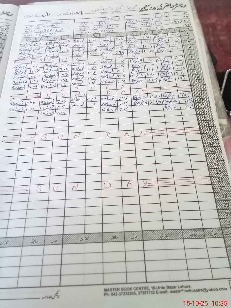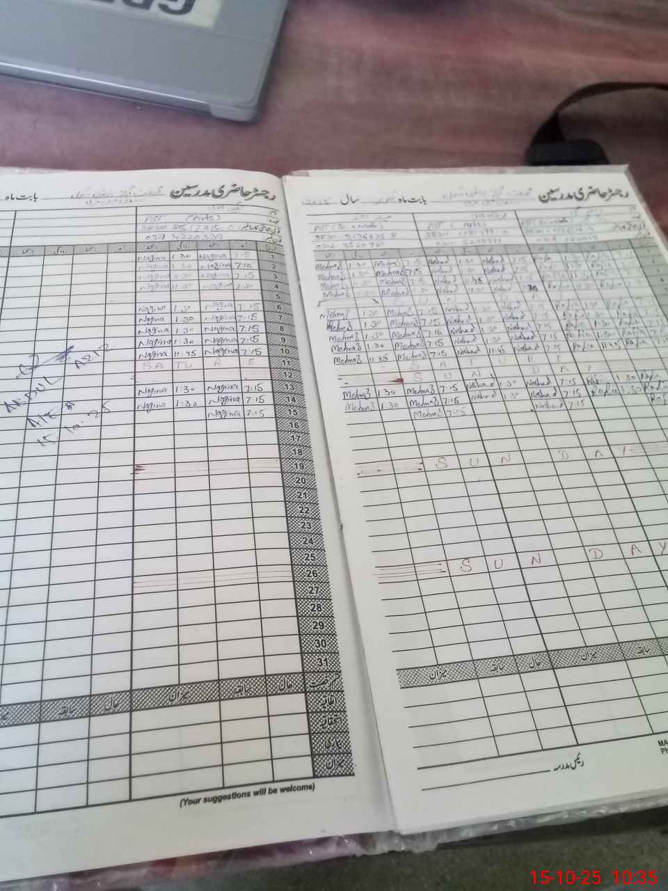 | CNIC | Full Name | Designation | R/C | Absence During Last Calender Month |