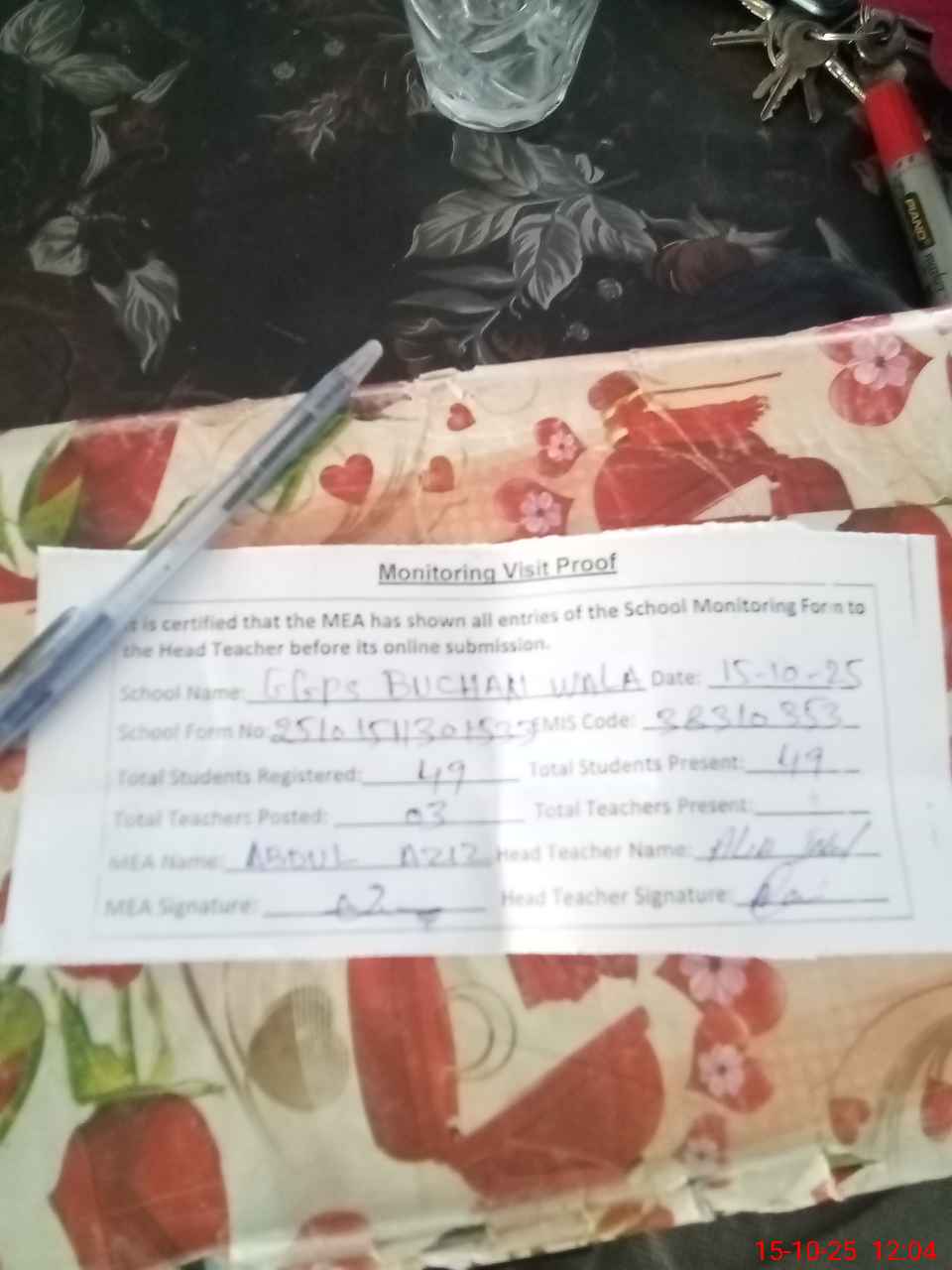 | EMIS Code: 38310353 | Name of School: GGPS BUCHAN WALA | |||