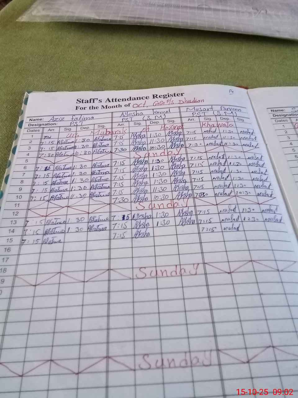 | Name: AZ**** FA**** Designation: (School Headmaster's/Headmistress's) PST Phone/Cell Number: 03**** |