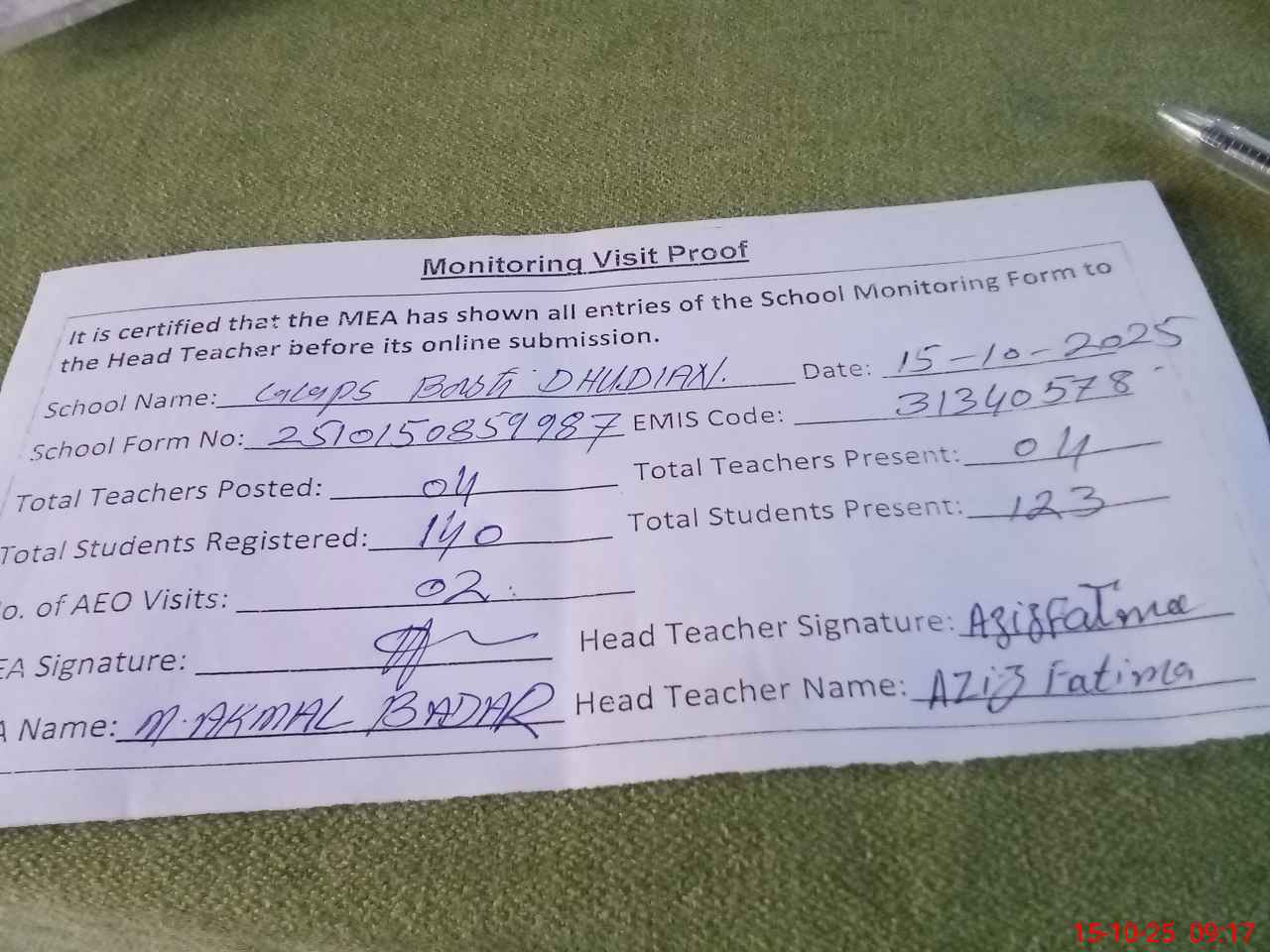 | EMIS Code: 31340578 | Name of School: GGPS BASTI DHUDIAN | |||