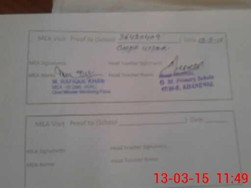 | Certified that this School was Inspected by the Undersigned MEA/DMO Today and the Information Stated Above is as Per Record. | |||||