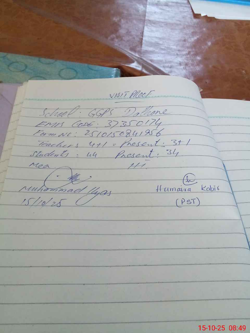 | Attendance Register | Head Teacher | MEA with School | Visit Proof |