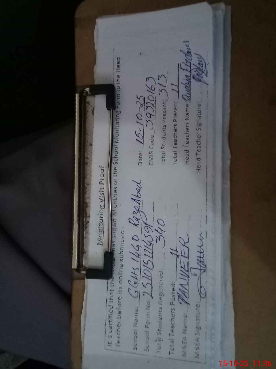 | Attendance Register | Head Teacher | MEA with School | Visit Proof |