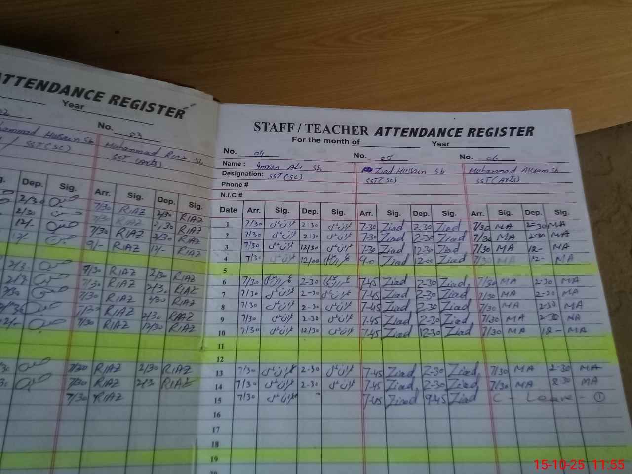 | CNIC | Full Name | Designation | R/C | Absence During Last Calender Month |