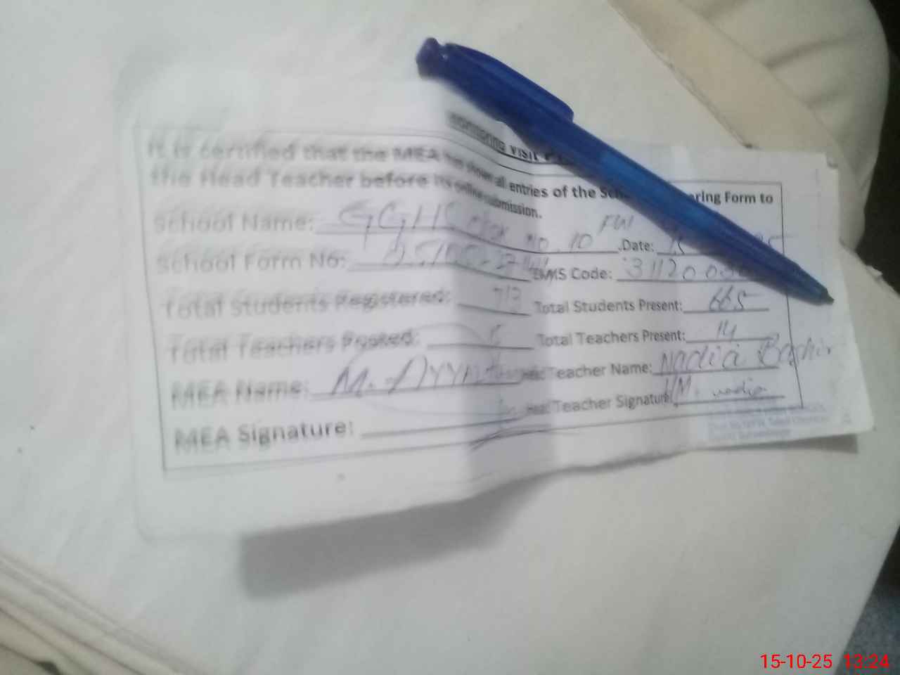 | Certified that this School was Inspected by the Undersigned MEA/DMO Today and the Information Stated Above is as Per Record. | |||||