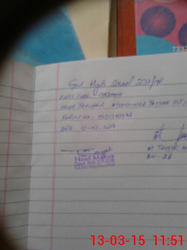 | Name: Mu**** Ah**** Designation: (School Headmaster's/Headmistress's) SST(Sc) Phone/Cell Number: 03**** |
