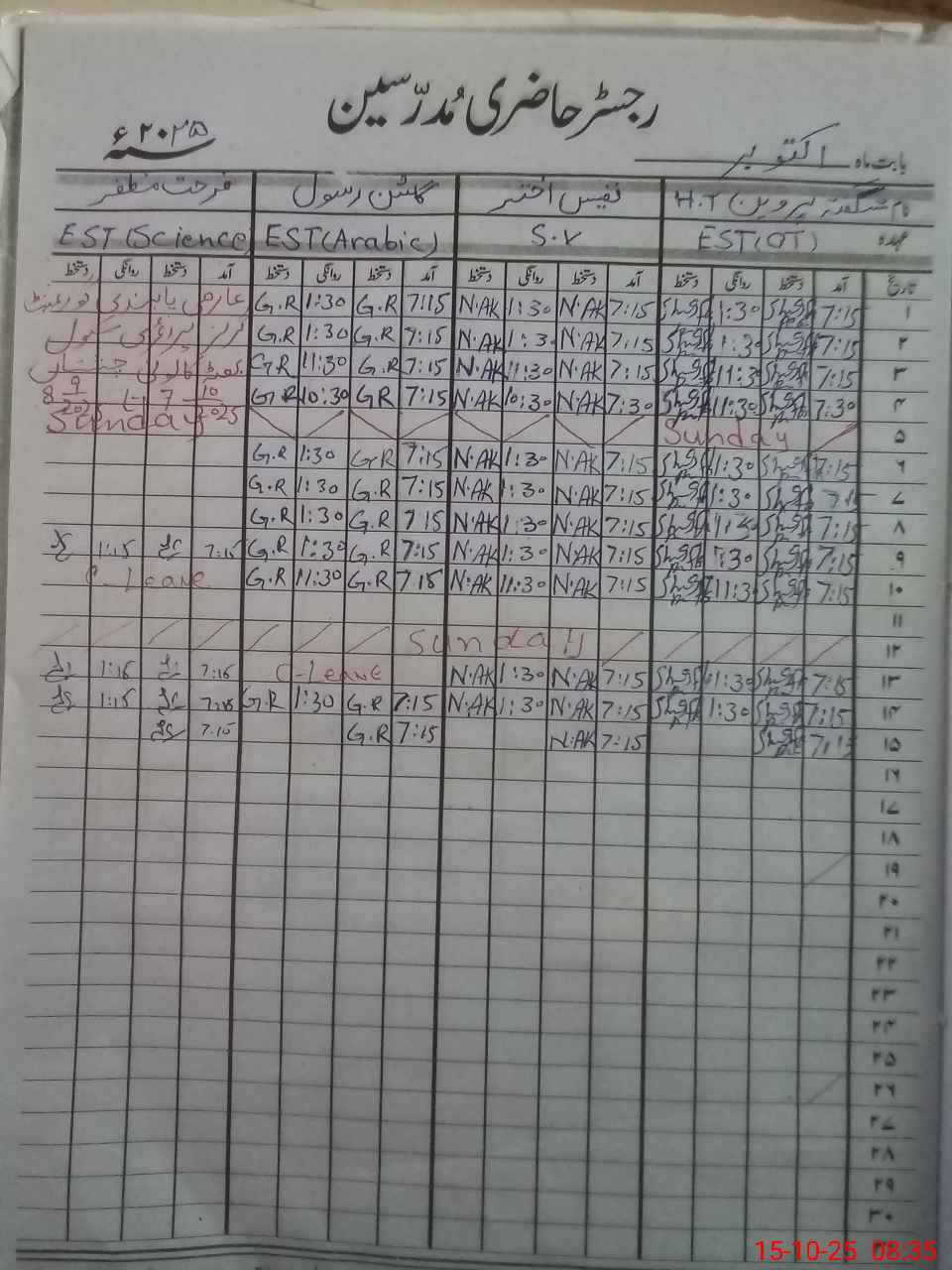 | CNIC | Full Name | Designation | R/C | Absence During Last Calender Month |