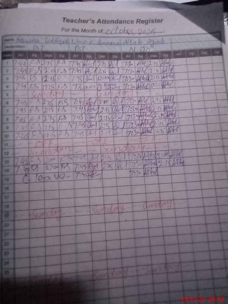 | 34**** | Fa**** Sa**** | PST | Regular | 0 | 0 | 0 | 0 | 0 | 0 | 0 | 0 | 0 | Casual |