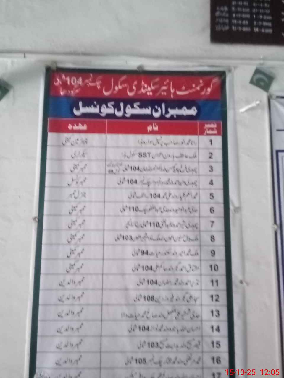 | EMIS Code: 38420040 | Name of School: GHSS CHAK NO.104 NB | |||