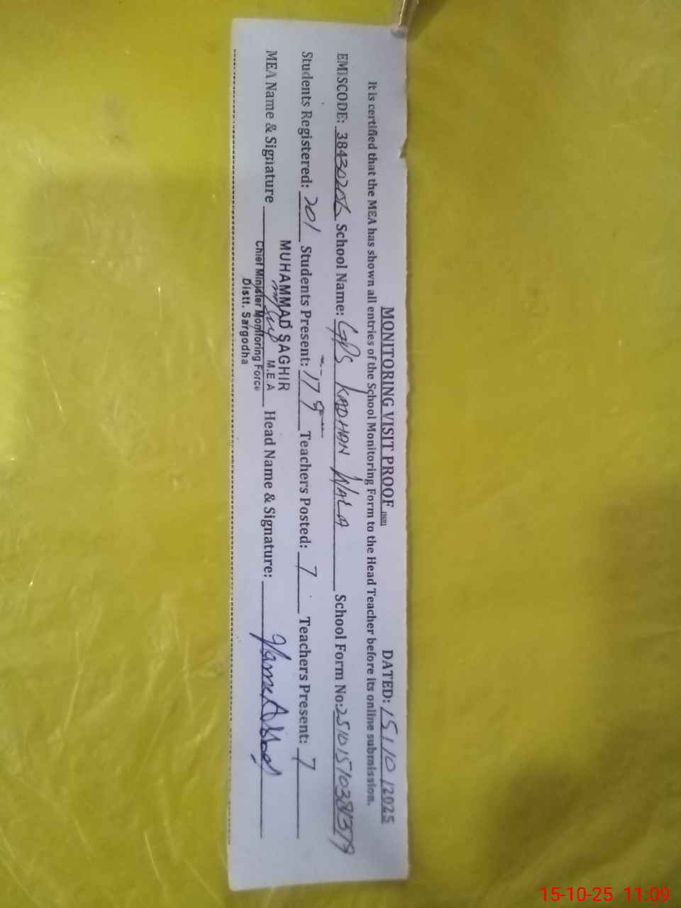 | EMIS Code: 38430206 | Name of School: GPS KADHAN WALA | |||