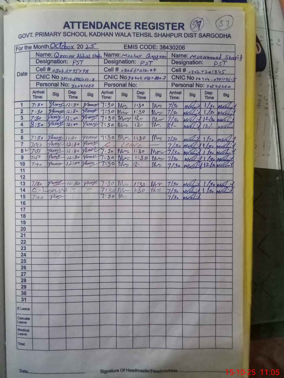 | Name: QA**** AB**** SH**** Designation: (School Headmaster's/Headmistress's) PST Phone/Cell Number: 03**** |