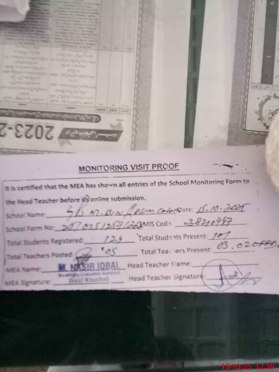 | Certified that this School was Inspected by the Undersigned MEA/DMO Today and the Information Stated Above is as Per Record. | |||||