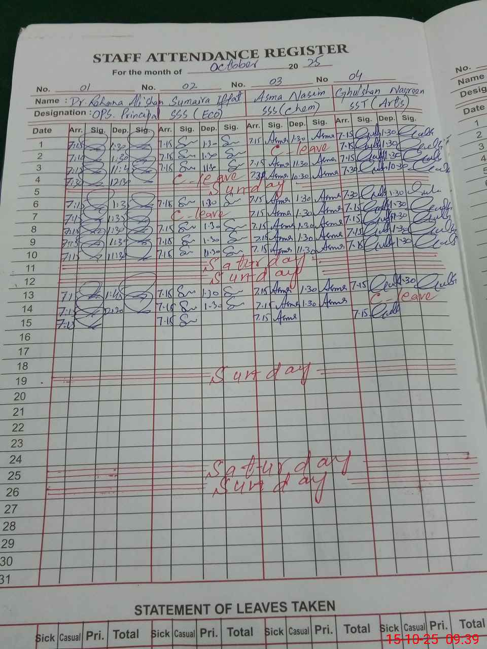 | 37**** | Na**** Su**** | PST | Regular | 0 | 0 | 0 | 0 | 0 | 0 | 0 | 0 | 0 | Maternity |
