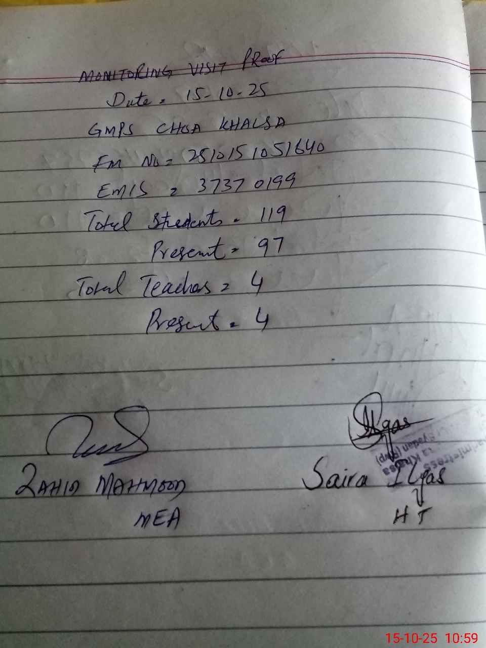 | EMIS Code: 37370199 | Name of School: GMPS NO. 2 CHOA KHALSA | |||