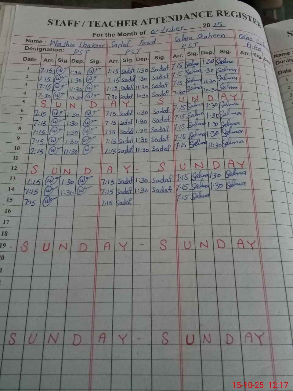 | CNIC | Full Name | Designation | R/C | Absence During Last Calender Month |
