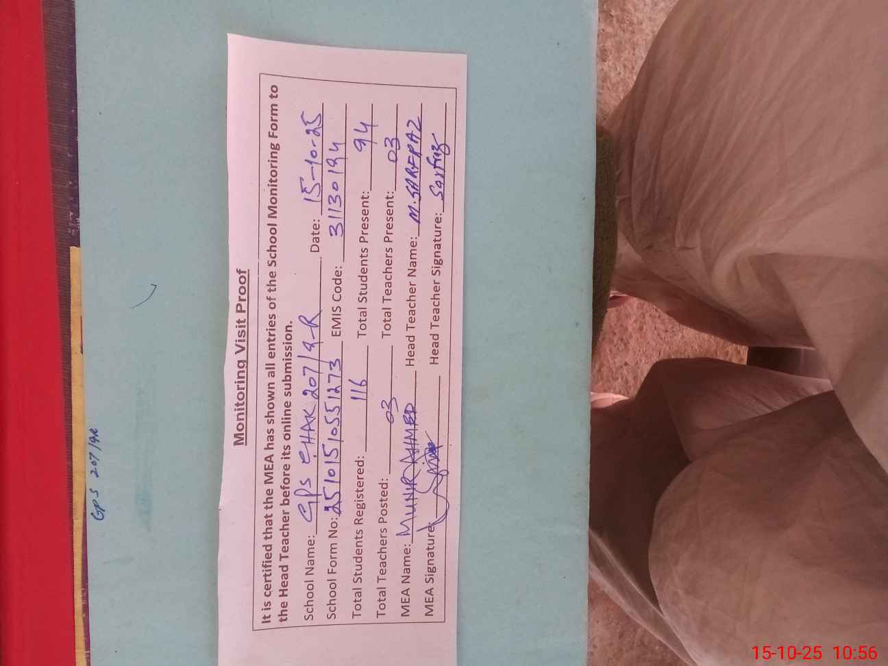 | EMIS Code: 31130194 | Name of School: GPS CHAK 207/9-R | |||