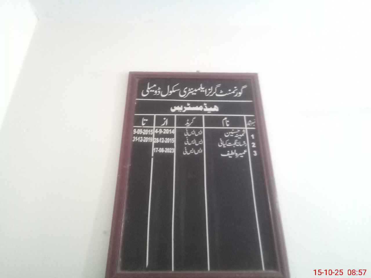 | District: JHELUM | Tehsil: SOHAWA | Markaz: DOMELI-FEMALE | Level: Middle | |