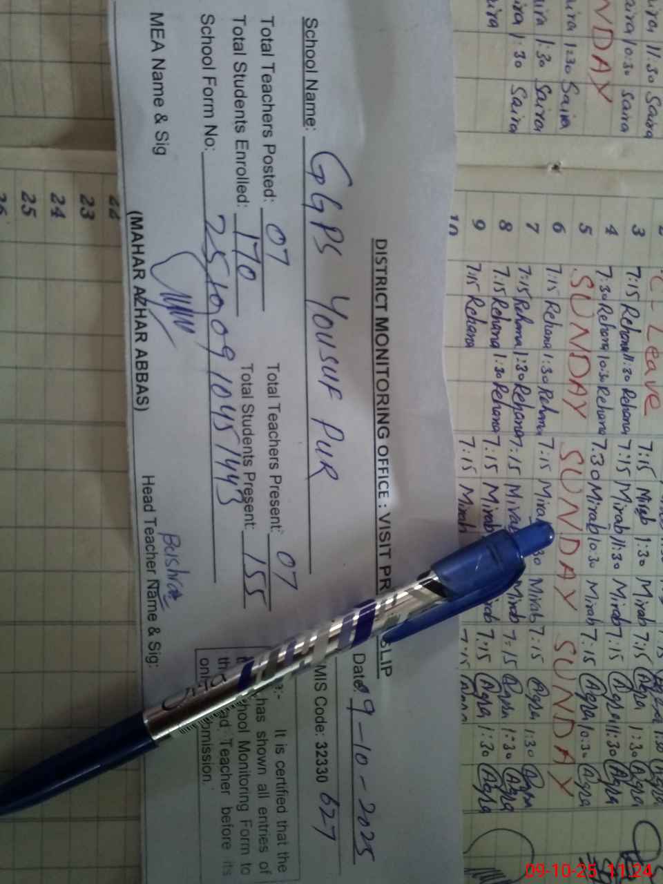 | EMIS Code: 32330627 | Name of School: GGPS YOUSUF PUR | |||