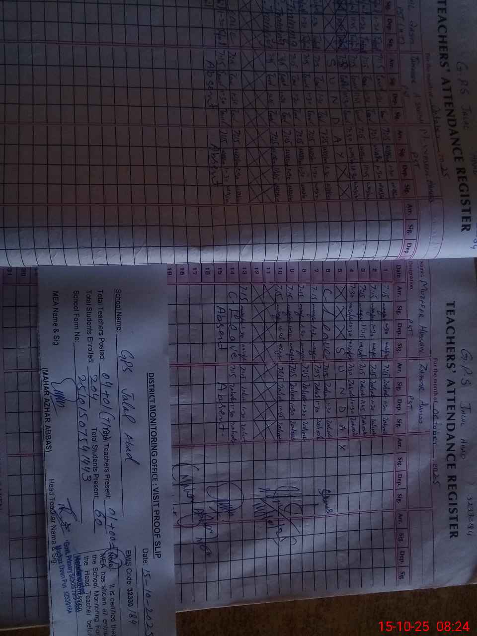 | Attendance Register | Head Teacher | MEA with School | Visit Proof |